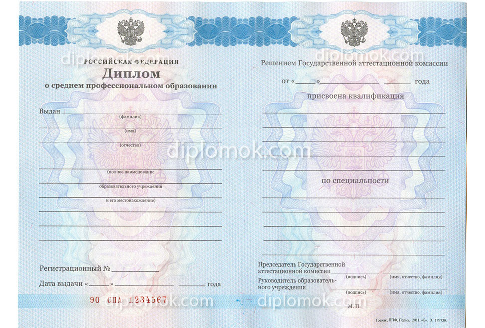 Диплом о среднем профессиональном образовании 2011-2013 годов