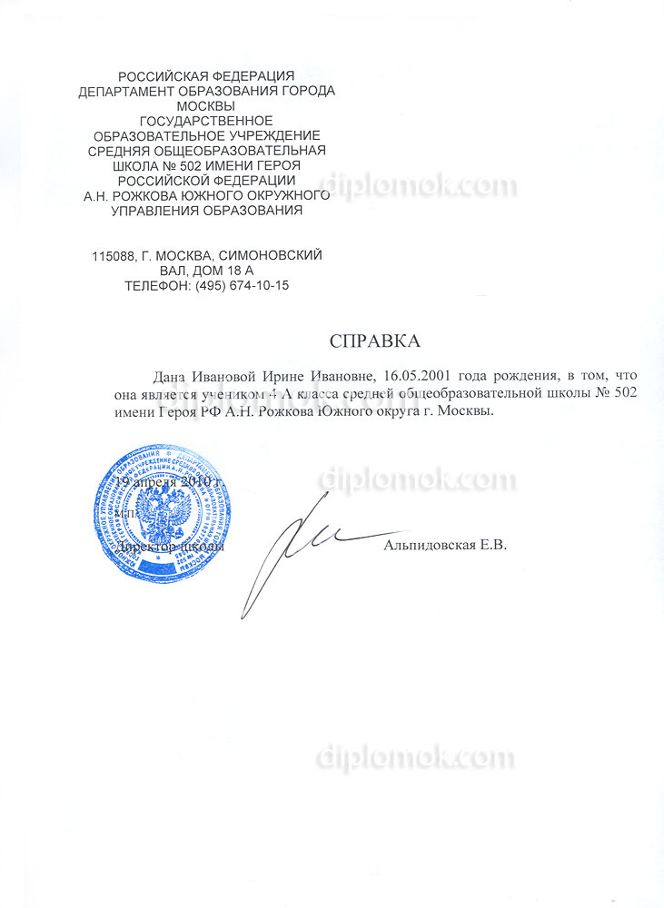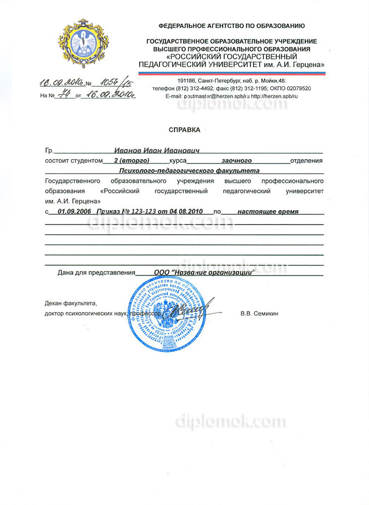 Купить справку об обучении в ВУЗе, школе, техникуме, училище
